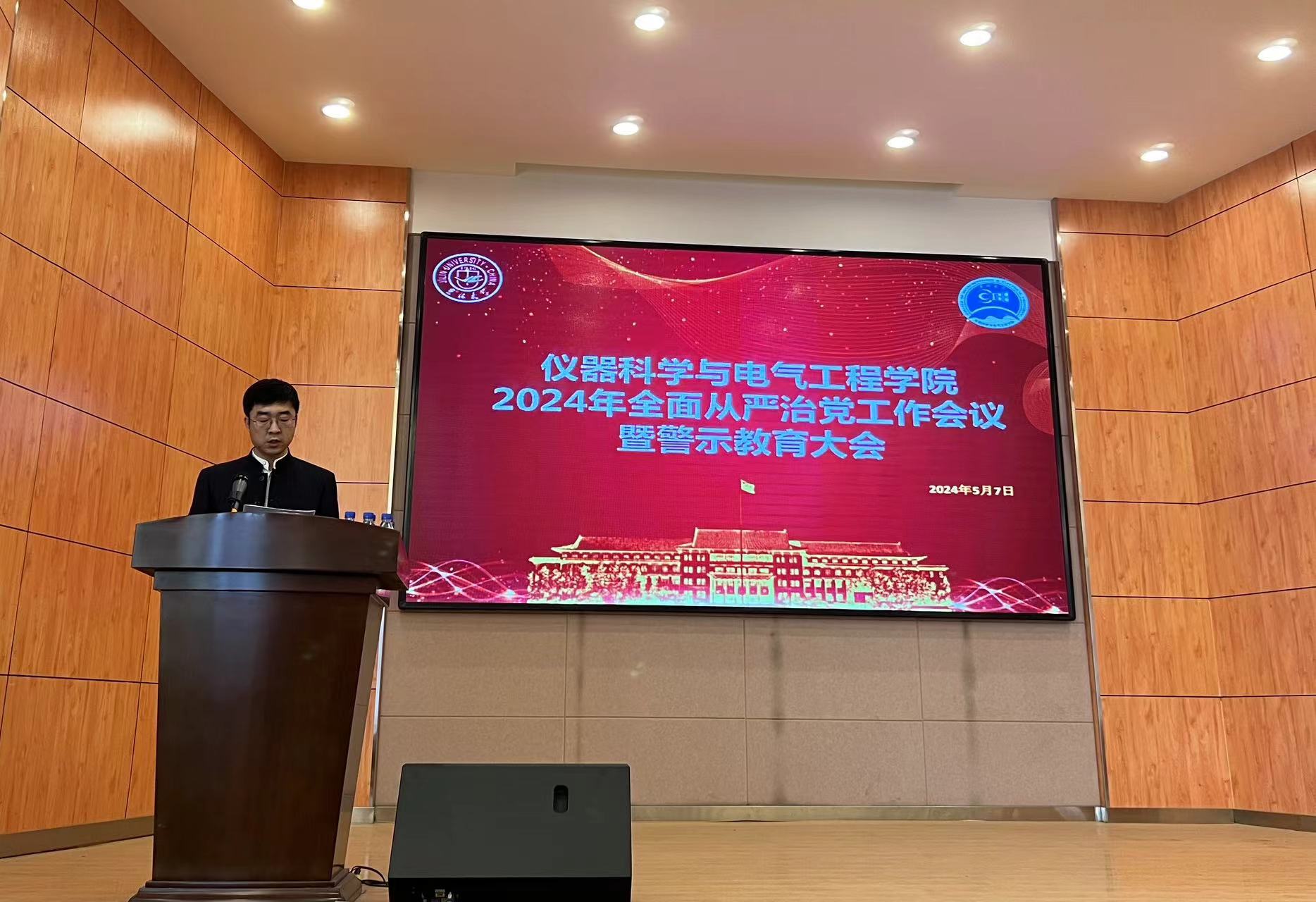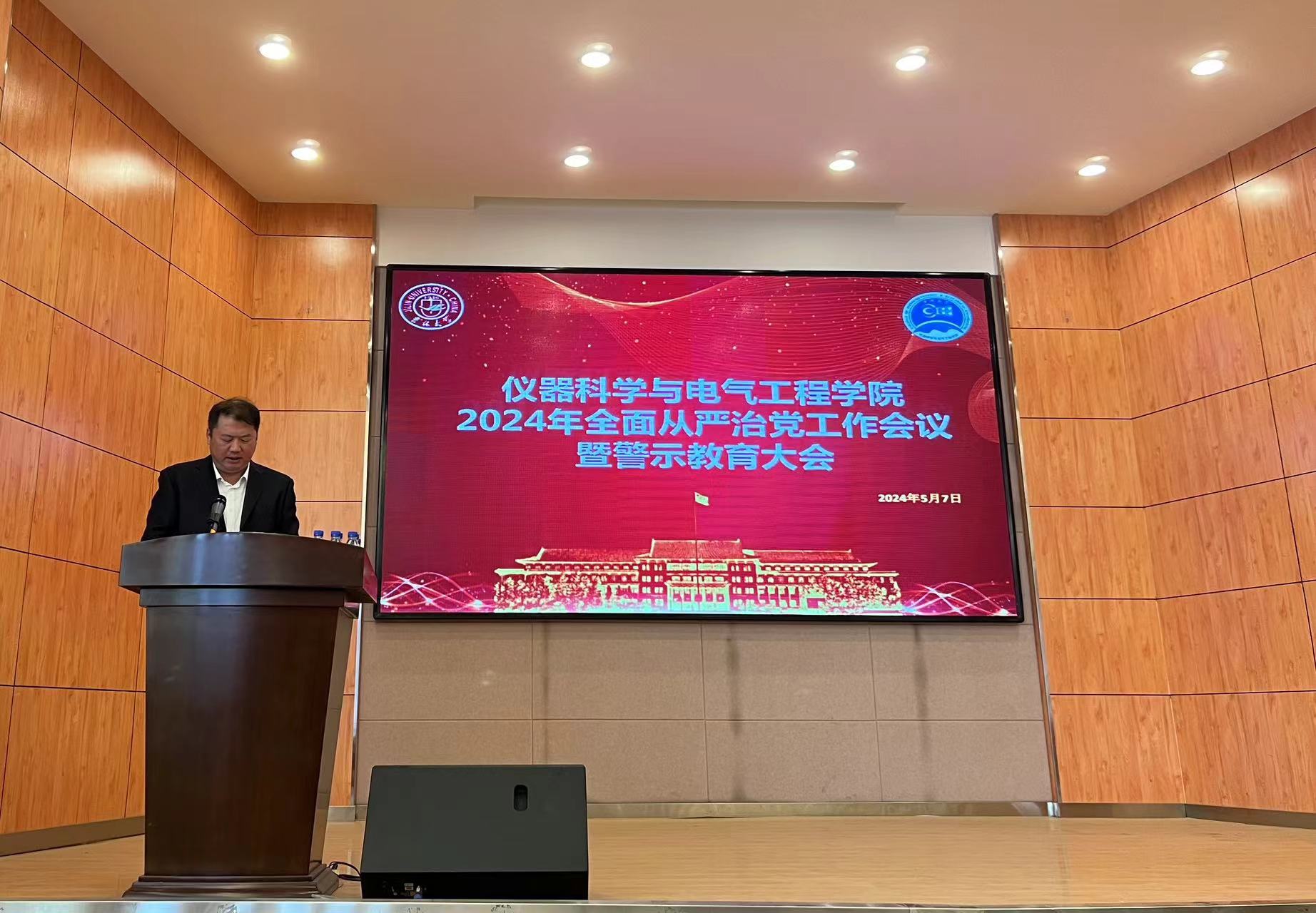 5月7日下午,A片网站 在朝阳校区图书馆报告厅召开2024年度全面从严治党工作会议暨警示教育大会。会议由学院党委书记邱增凯主持,A片网站 全体教工参加了本次会议。