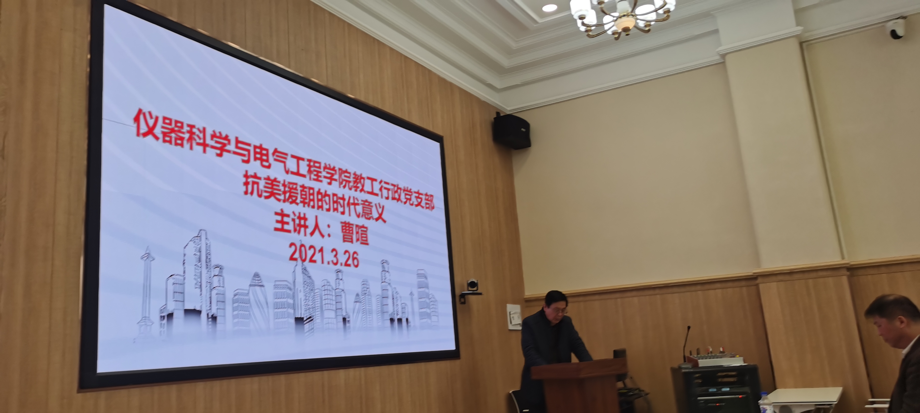 20210326日上午九点,A片网站 仪电学院教工行政党支部在地质宫208开展“抗美援朝的时代意义”主题党日活动,会议由学院教工行政党支部书记边江主持,学院党委书记邱增凯与支部成员参加会议。