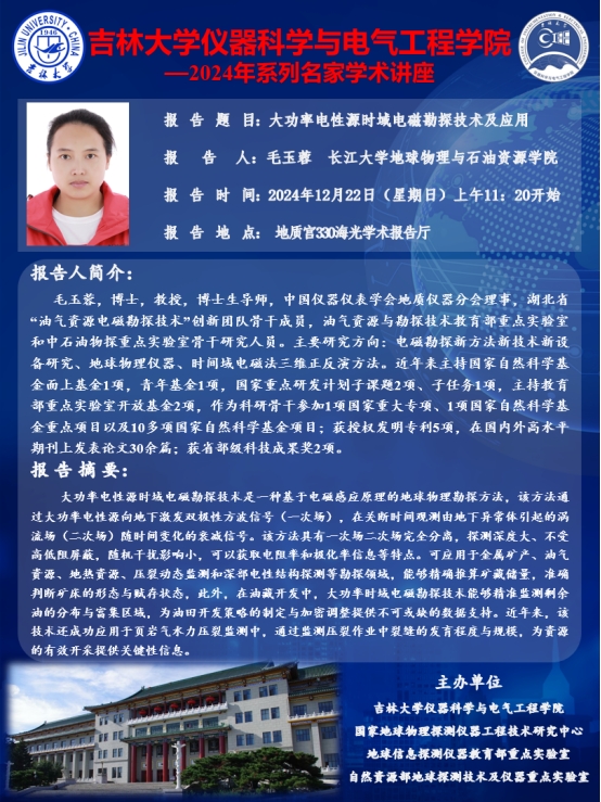 A片网站 2024年系列名家学术讲座——毛玉蓉 长江大学地球物理与石油资源学院