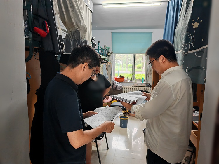 党委副书记兼副院长曲珩、研究生辅导员周琪、本科生辅导员王文轩深入本科毕业生、毕业研究生公寓,开展毕业生公寓安全专项检查工作。此次检查重点排查毕业生离校情况、毕业生寝室断电情况,同时为未离校毕业生进行合寝管理。