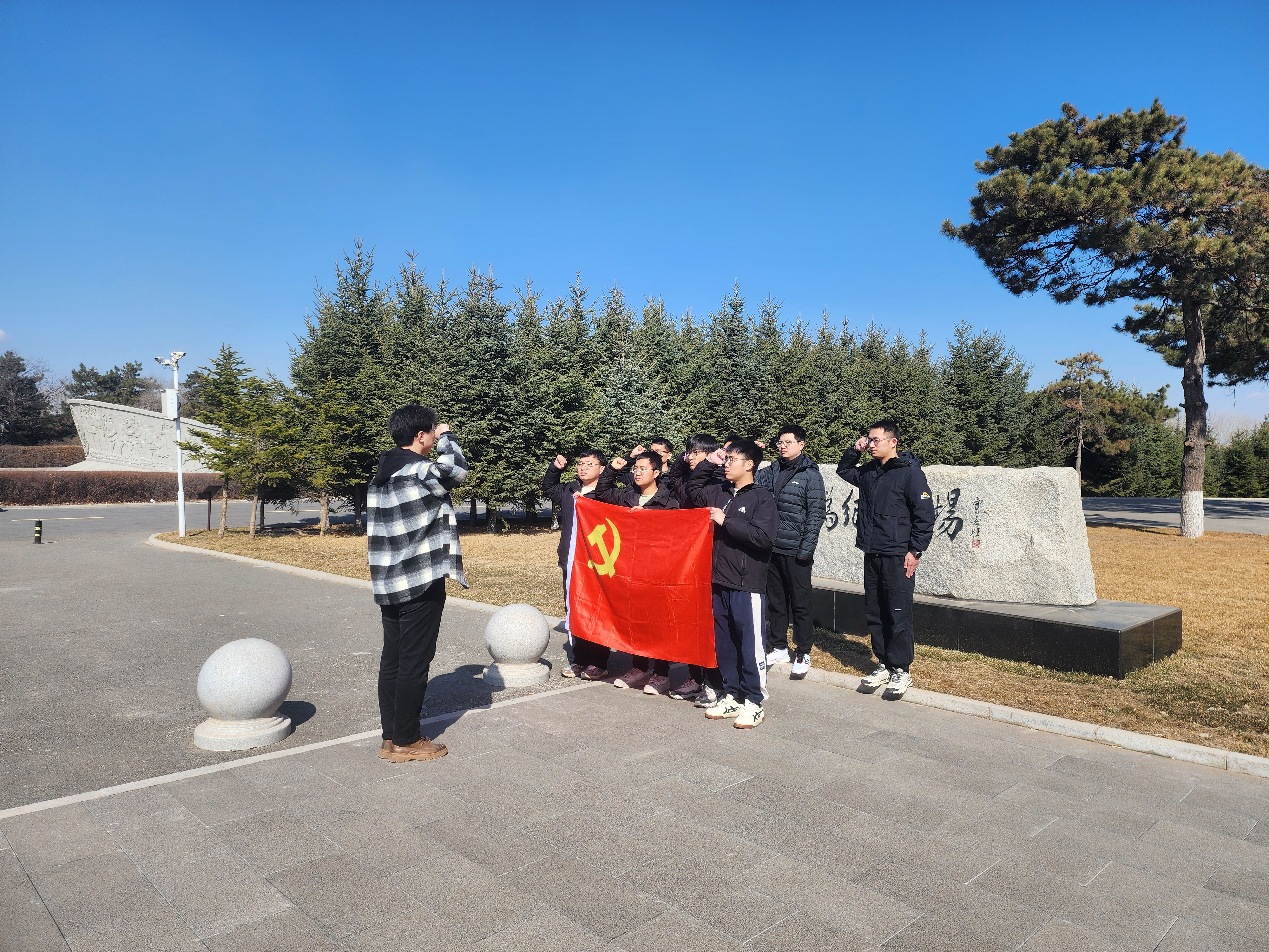 上午8点,在仪电学院博士学生第二党支部书记郝毅同志的带领下,一行人前往长春市革命烈士陵园,瞻仰了吉林公安英烈纪念碑和长春市见义勇为纪念碑,领会纪念碑上镌刻的先烈英勇事迹和不朽精神。在纪念碑前,同志们献上鲜花并默哀致敬,寄托对烈士们的无尽哀思和崇高敬意,表达对烈士们的感激与怀念。随后,一行人参观了长春市革命烈士纪念馆,聆听馆内讲解员讲述的烈士们为了民族独立和人民解放事业,不畏强敌、不怕牺牲的英勇事迹,更加坚定了同学们继承和发扬烈士精神、为实现中华民族伟大复兴的事业而努力奋斗的决心和信心。最后,党员同志在纪念碑前重温入党誓词,初心不改,对革命先烈表达最崇高的敬意。