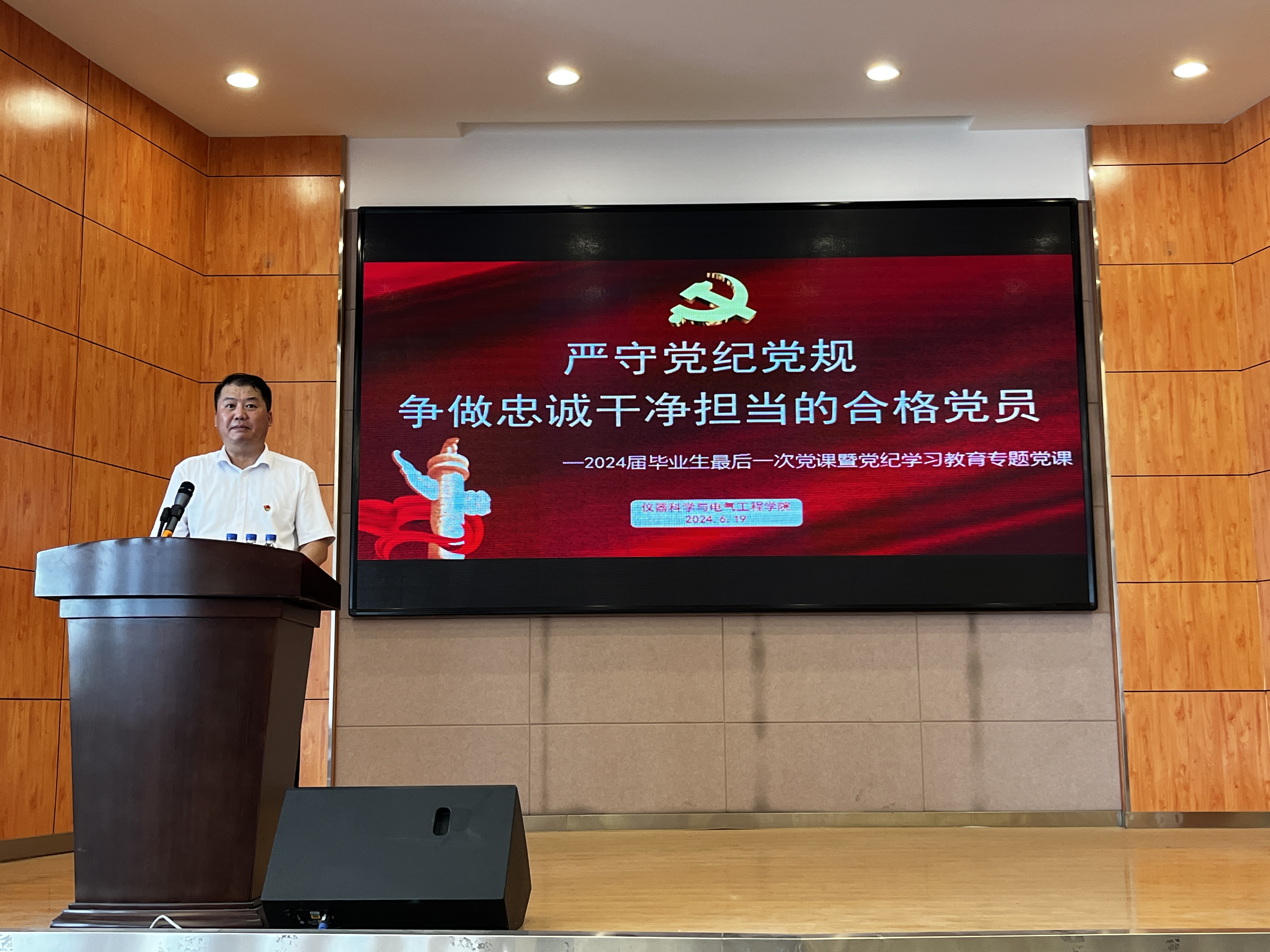 为深入学习贯彻习近平总书记关于党纪学习教育的重要讲话和重要指示精神,2024年6月19下午A片网站 党委书记邱增凯在朝阳校区图书馆李四光厅为学院全体毕业生党员讲授最后一次党课本次活动由学院行政副院长南旭良主持,学院全体本科生、研究生毕业生党员参加活动。